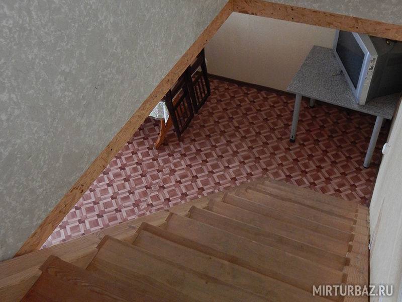 - 2 этаж: 2 спальни — в каждой по двухместной кровати, 1 спальня — две 1,5-спальные;