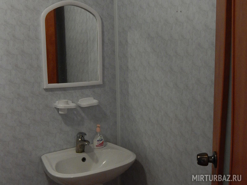Комнаты представлены двумя или тремя 1,5-спальными кроватями. В комнате имеется стол, 2 стула, зеркало, крючки для одежды. На улице холодильник на 2 комнаты. Удобства на территории базы.