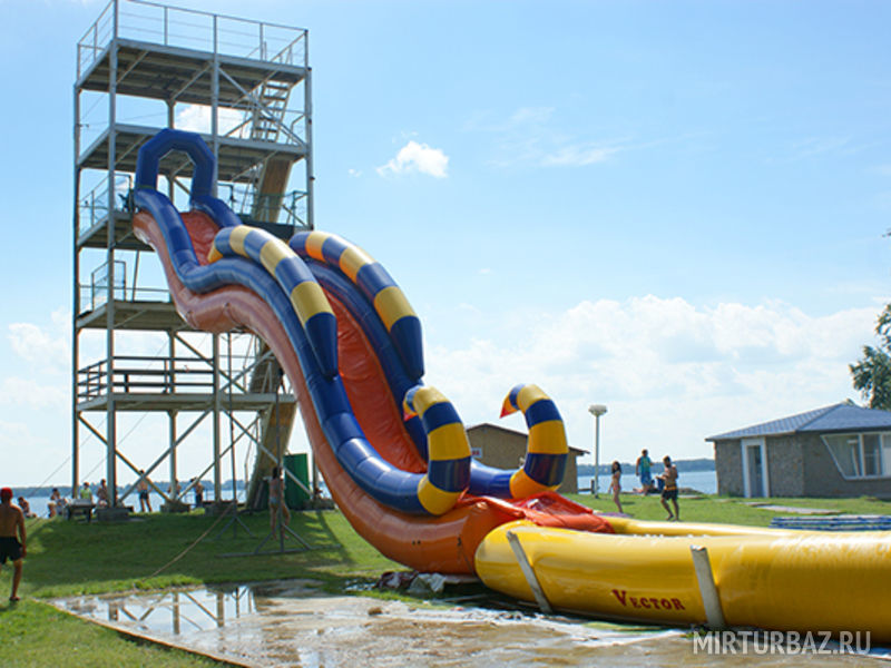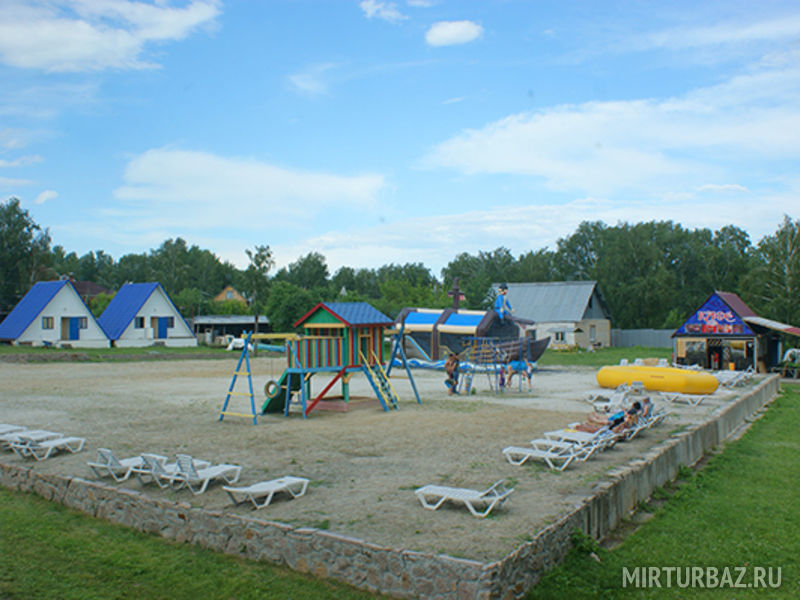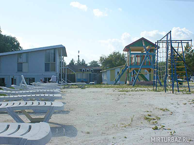 На турбазе есть прекрасный пляж, оборудованный всем необходимым.