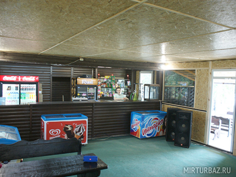 На территории находится кафе в котором можно вкусно покушать, купить мороженное и многое другое, а также покурить дымный кальян.