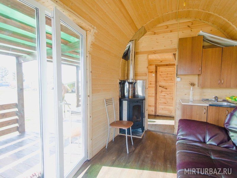 Уютные небольшие двухместные домики с видом на озеро, террасой и всем необходимым внутри.