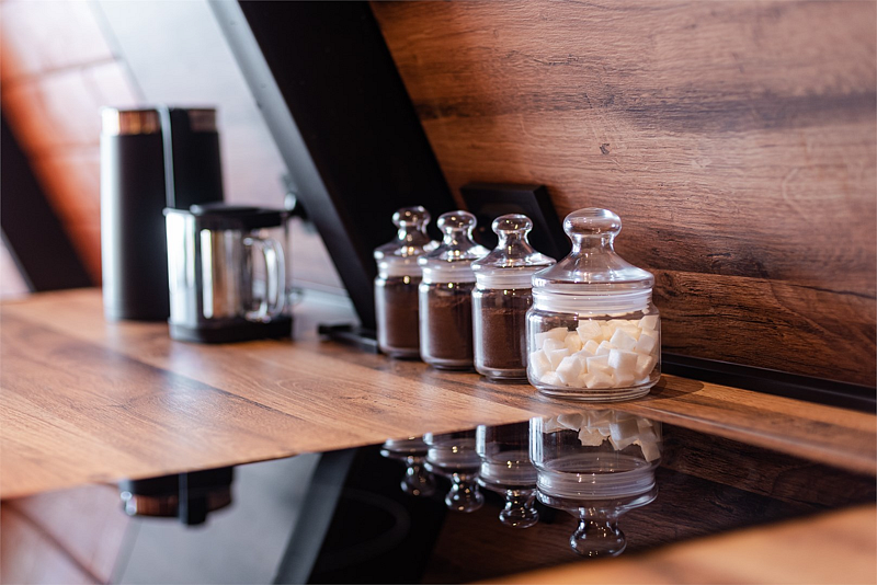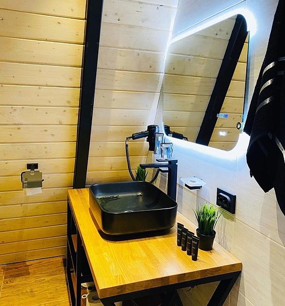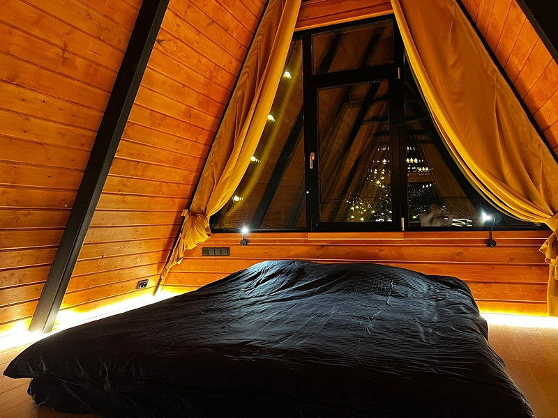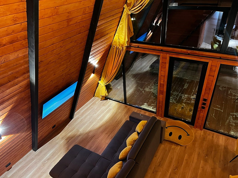 В глэмпинге «Атмосфера» вам предложат небольшие домики с широкими окнами, открывающими вид на природу. В каждом домике есть удобная мебель, система хранения, собственный душ и туалет. Для комфортного проживания установлены кондиционеры и Wi-Fi.