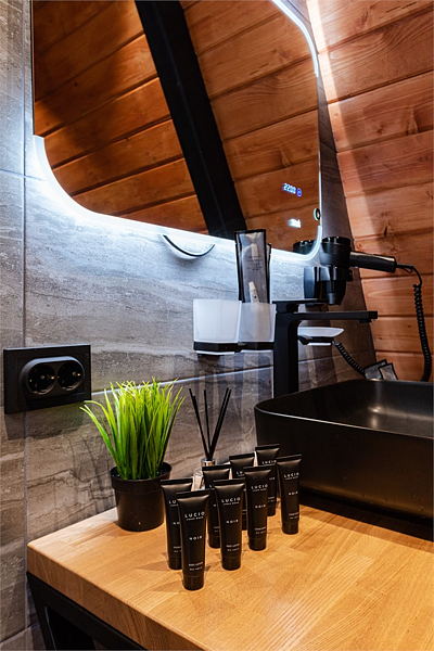 Система умный дом, система климат-контроля, шапочка для душа, барная стойка, высокие потолки, ламинат, номер для некурящих, экологичный подход.