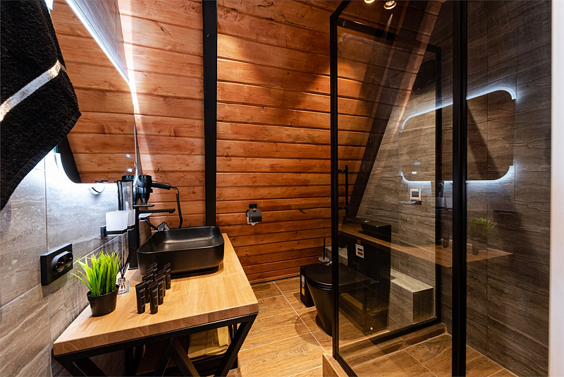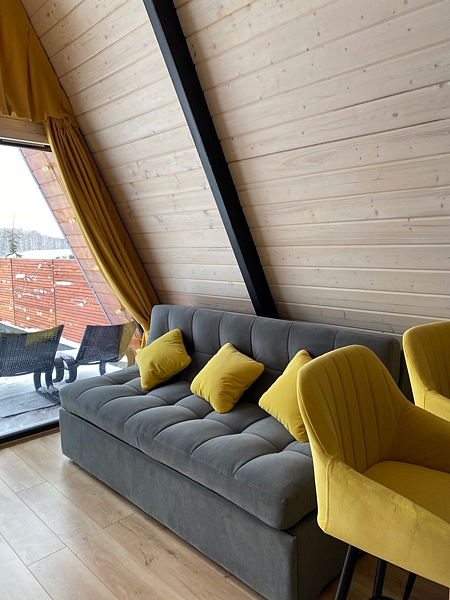 - проживание в доме А-фрейм с собственной террасой;