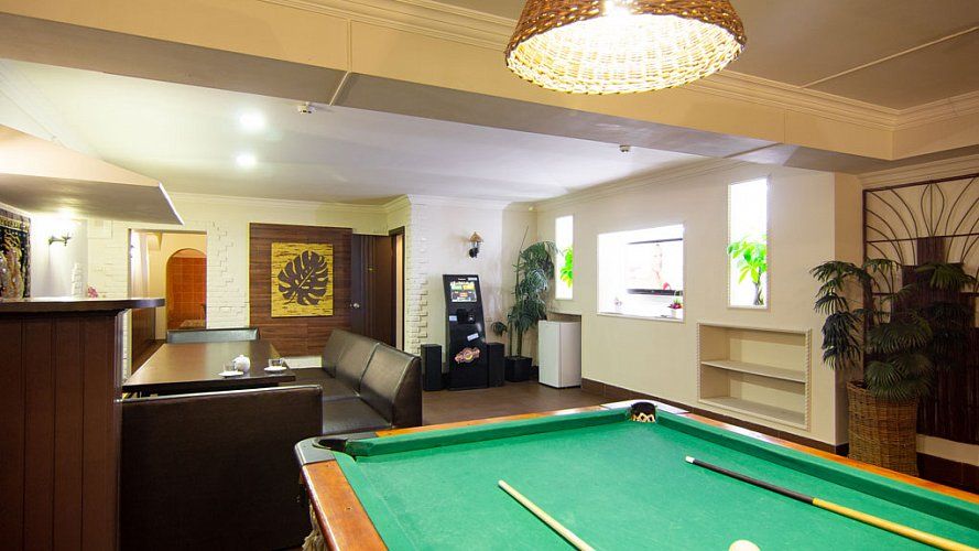 Приятным дополнением станет большой экран, с которым любая спортивная трансляция станет приятным событием для заядлых болельщиков.Столиков в зале: 7