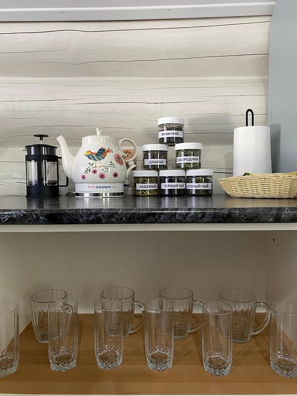 Инфраструктура: полотенца, простыниРусская Банька в лесу - это 2-х этажная деревянная баня, топится дровами, рассчитана на группу до 4 человек. На первом этаже находится парилка, душевая, диванчики для отдыха. На втором этаже комната отдыха с оборудованной кухней, где Вы можете заварить себе чай из трав Урала (иван-чай, смородина, мелиса), а также отведать вкусное домашнее варенье и натуральный мед. Есть выход на мансарду, откуда открывается красивый вид на лес. После парения там можно посидеть на креслах и насладится тишиной.