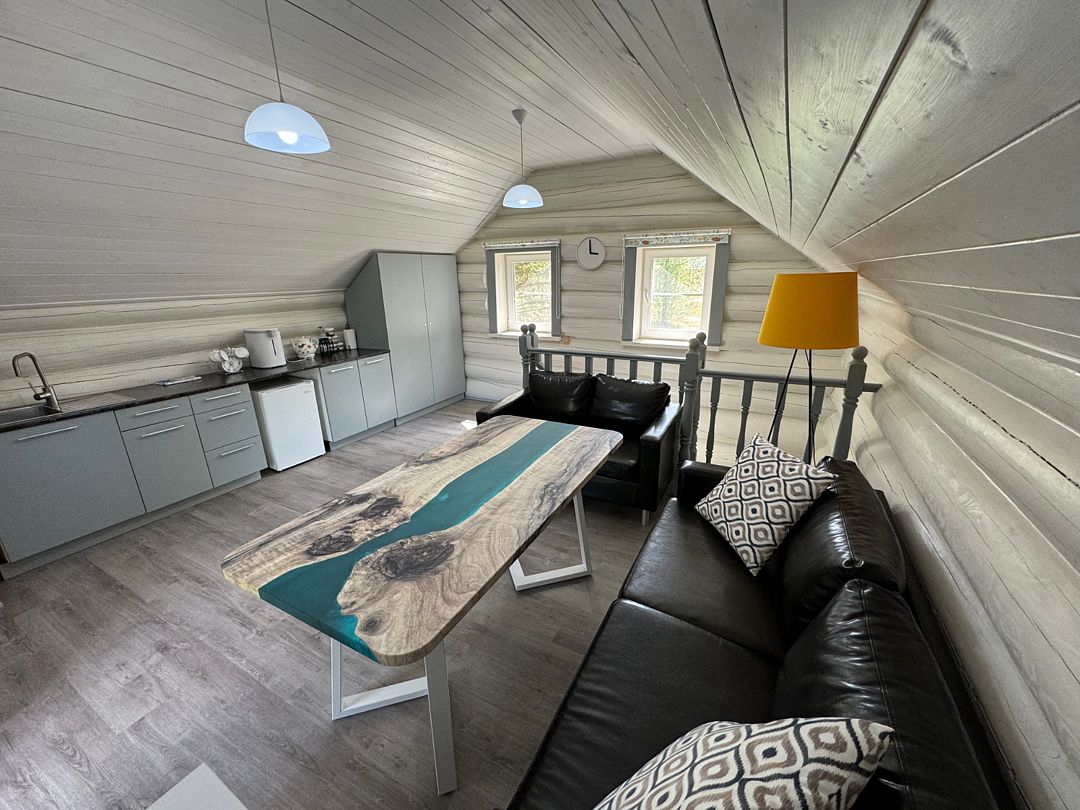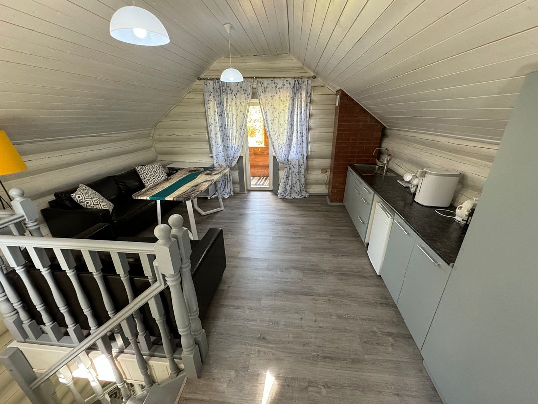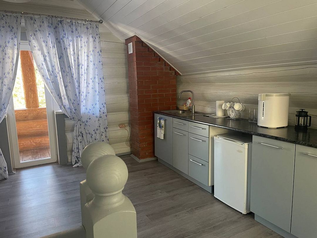 Читать полностьюРусская Банька в лесу - это 2-х этажная деревянная баня, топится дровами, рассчитана на группу до 4 человек. На первом этаже находится парилка, душевая, диванчики для отдыха. На втором этаже комната отдыха с оборудованной кухней, где Вы можете заварить себе чай из трав Урала (иван-чай, смородина, мелиса), а также отведать вкусное домашнее варенье и натуральный мед. Есть выход на мансарду, откуда открывается красивый вид на лес. После парения там можно посидеть на креслах и насладится тишиной.