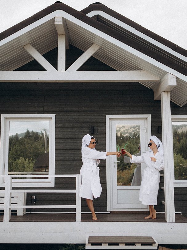 Инфраструктура: зона отдыха, дубовые веники, березовые веникиМинимальное время аренды: 2 часаНасладитесь баней на дровах в скандинавском стиле с потрясающим видом на горы — идеальное место для релакса и оздоровления. После парной вас ждет кинотеатр в комнате отдыха. Дополнительно можно заказать березовый или дубовый веник для идеального банного ритуала.