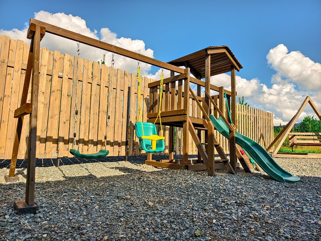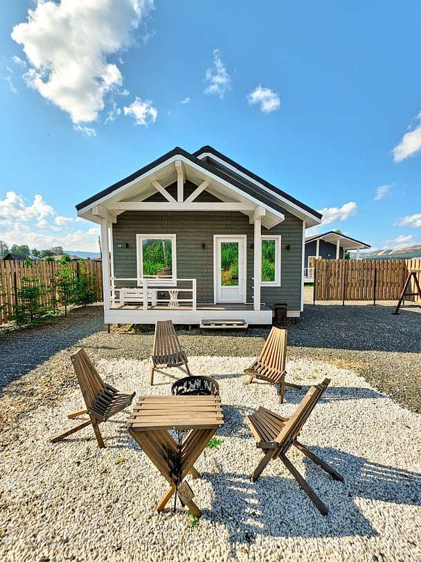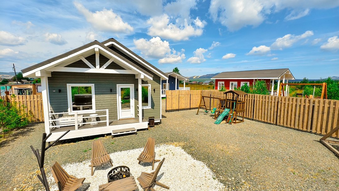 Каждому дому принадлежит собственная закрытая территория, где можно насладиться уединением и комфортом. Здесь оборудованы мангал для ароматных шашлыков, уютная костровая зона для теплых вечерних посиделок, просторные качели и премиальная купель Фурако, где так приятно расслабиться после активного дня. Для самых маленьких гостей предусмотрена безопасная и веселая игровая площадка, где они смогут играть и веселиться.
