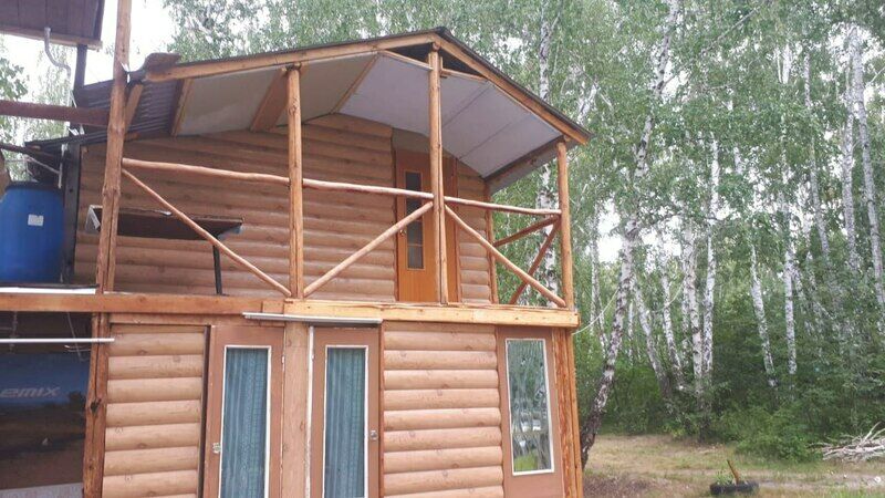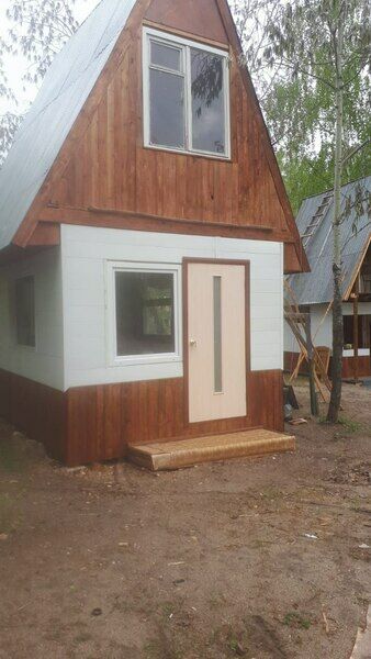 Двухэтажный домик . В доме имеются спальные места - раскладные диваны. 2 спальных места на первом этаже и 4-5 спальных мест на 2 этаже.