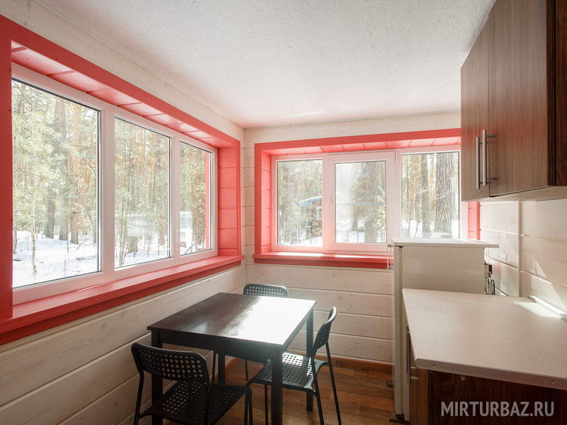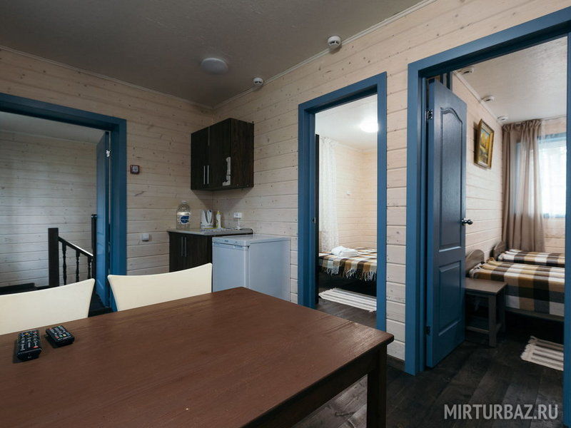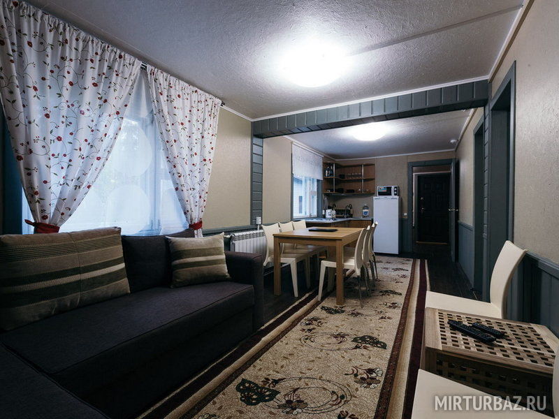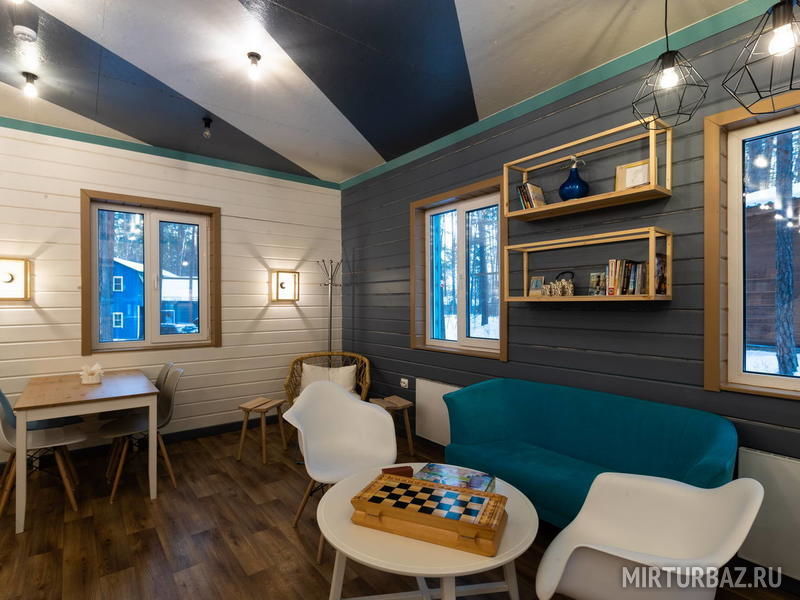 Инфраструктура базы представляет собой: два корпуса, уютные домики, детскую площадку и комнату для малышей.