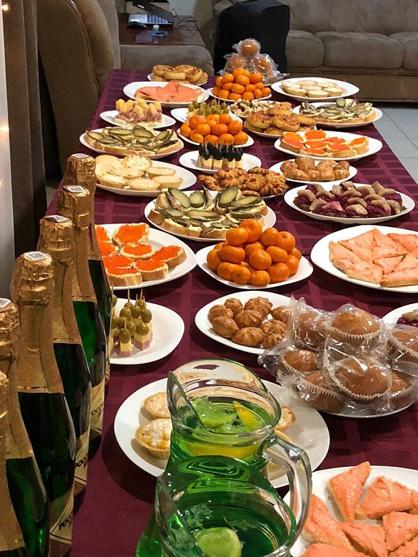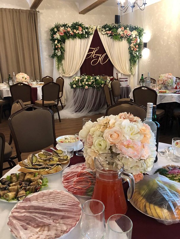 Средний чек на банкет от 2500 ₽ на человека (холодные закуски, нарезка, салат порционный, горячее с гарниром).
