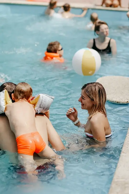 Семейный отдыхДостоинстваЧистый бассейн, который убирают каждый день, бесплатная мангальная зона, парковка, а также чистый пляж и озеро.