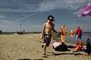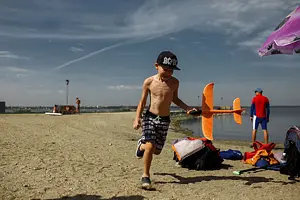 200 метровая песчаная береговая зона с равномерным заходом в воду.