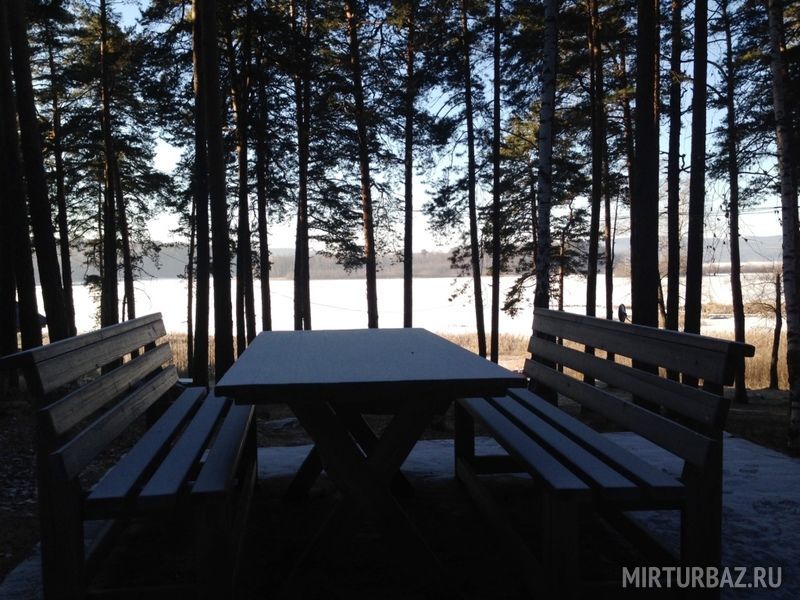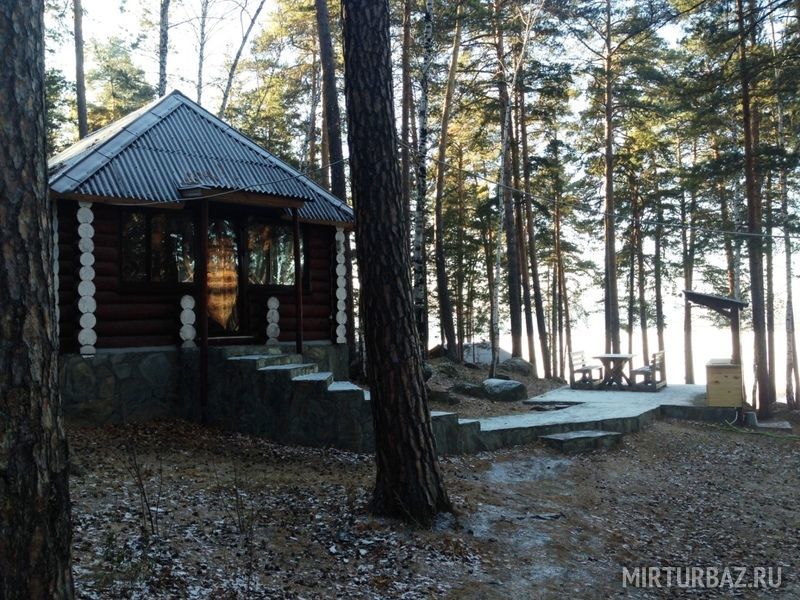 На самом берегу озера Кисегач, на территории частной охраняемой базы отдыха сдается отапливаемая дровяной печью застекленная беседка. Возможна аренда вместе с баней.
