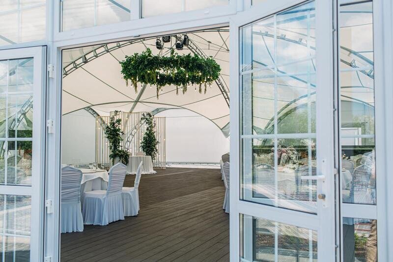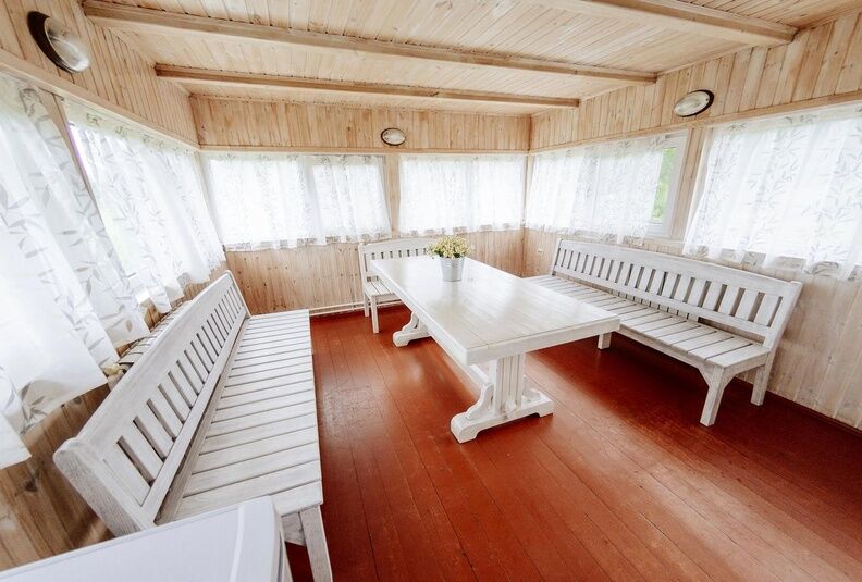 - Панорамная беседка, вместимость 20 человек - 4000 ₽/час. Акция «Весь день» с 9:00 до 21:00 - 25000 ₽.