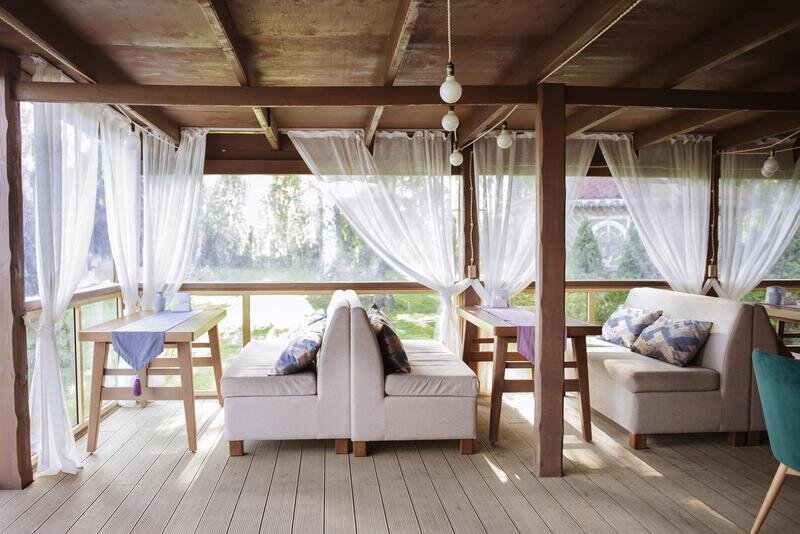 - Беседка у озера, вместимость 25 человек - 3000 ₽/час. Акция "Весь день" с 9.00 до 21.00-20000 ₽.
