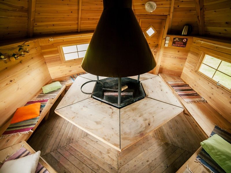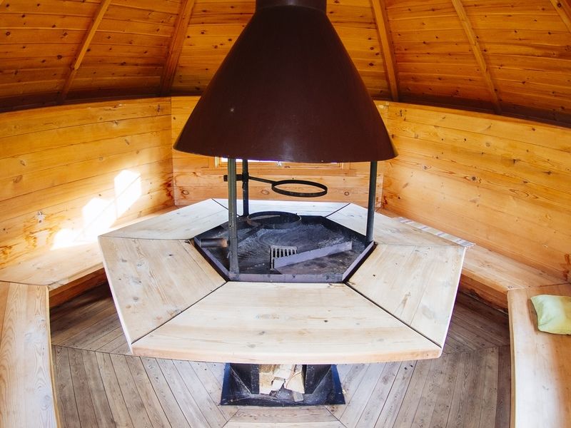 Внутри гриль-домиков находятся столы с посадочными местами и встроенным грилем, который служит источником обогрева и местом для готовки. Также отдельно предоставляется дополнительный мангал, уголь, дрова и розжиг.