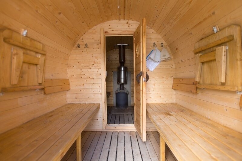 Летом можно попариться и сразу поплавать, а зимой после парения сразу окунуться в купель. Около бани стоит стол и стулья ,чтобы гости могли отдохнуть и насладиться шикарными видами природы.