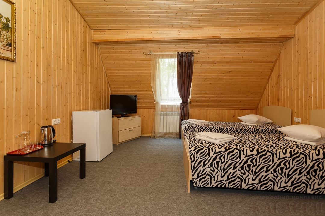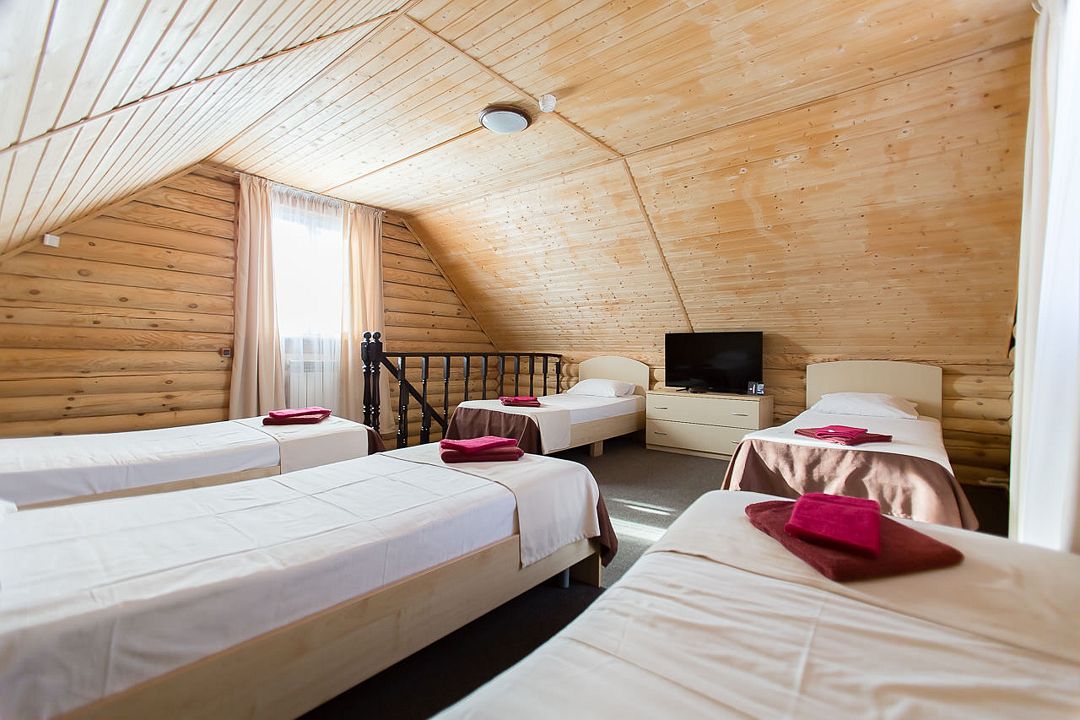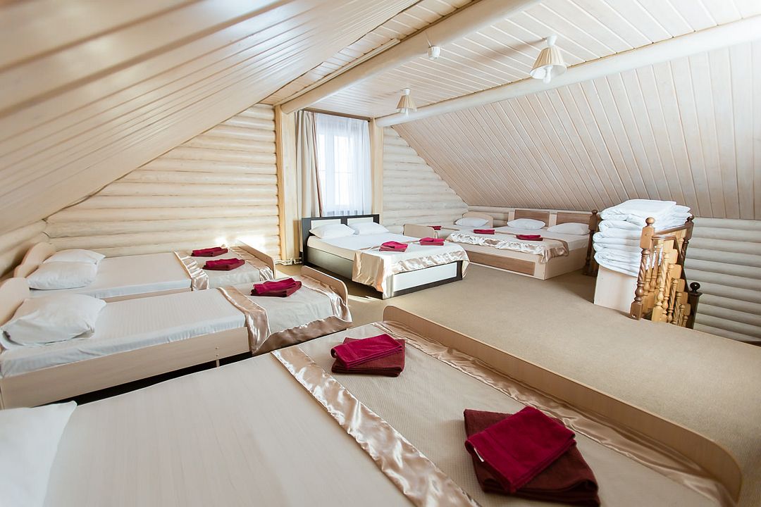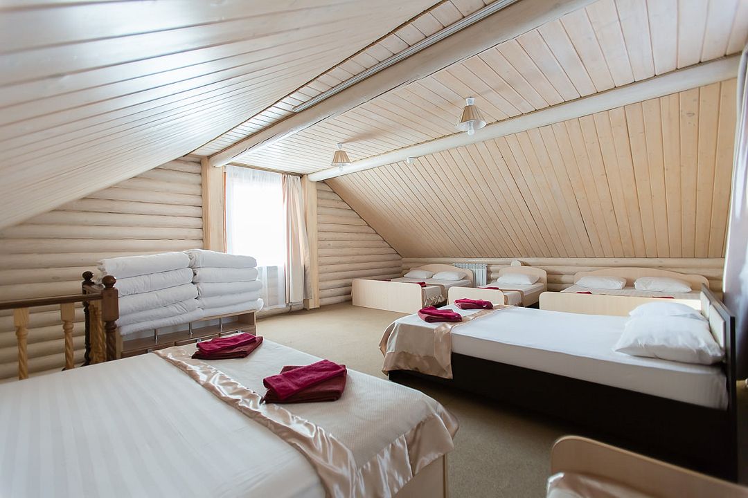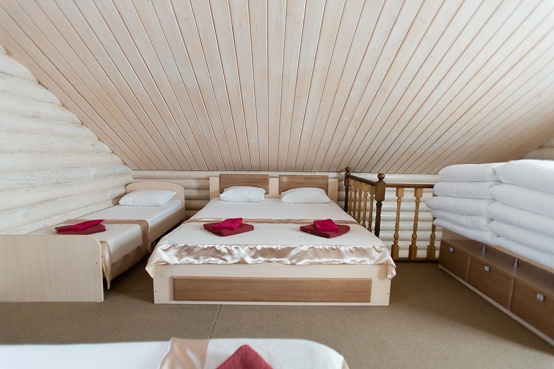 Гости могут разместиться в гостиничном корпусе в двухместных номерах или выбрать одно- и двухэтажные деревянные дома-коттеджи, рассчитанные на 5—10 гостей. В номерах и коттеджах есть все необходимое для комфортного размещения: санузел с душем, телевизор, электрочайник, мини-холодильник, в коттеджах есть кухня, оборудованная посудой и бытовой техникой.