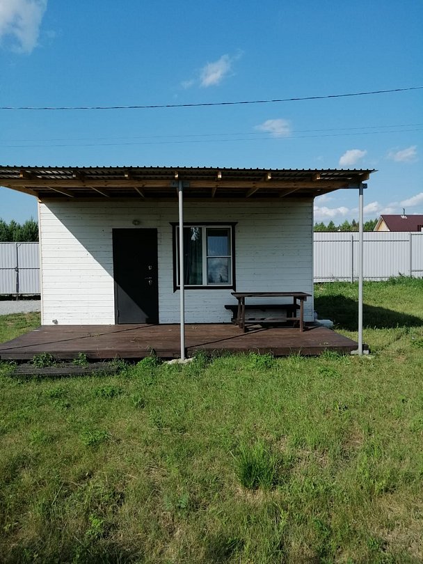 Небольшой уютный дом со своей кухонной зоной, туалетом, тремя кроватями, зеркалом, столом, двумя табуретами, всей необходимой посудой и большой террасой. На террасе большой стол и скамья. Душ летний на улице.