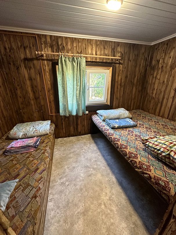 Дом рассчитан на 14 человек. На первом этаже большой зал 50 м2 с двумя спальнями (2 двуспальная кровать + 2 односпальные кровати). На втором этаже три спальни (восемь мест).