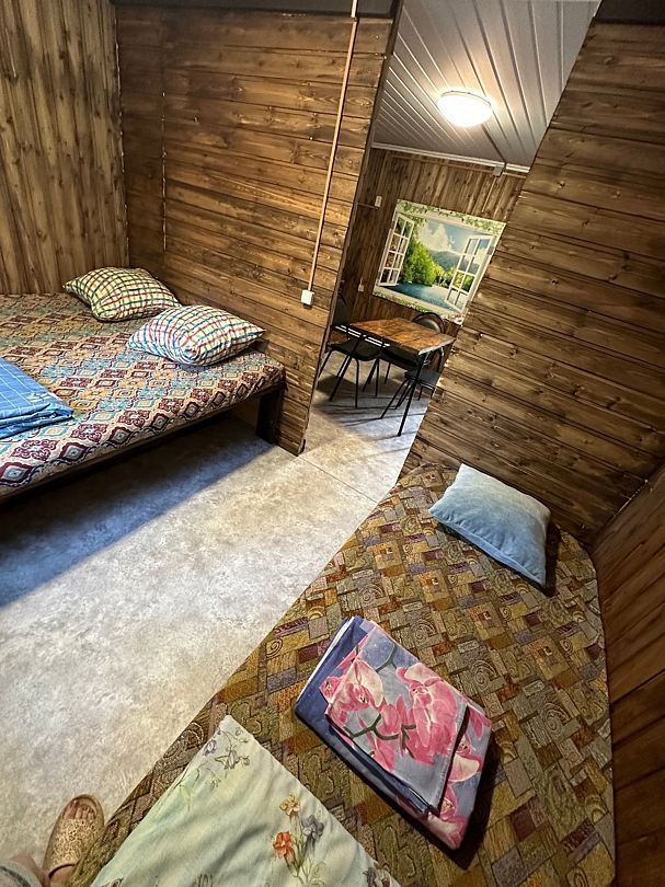 Уютный дом на 3 человек. Рядом с домом располагается небольшая зона с мангалом и беседкой. Также есть возможность забронировать обе половинки сдвоенного дома, чтобы вместе провести время и комфортно отдохнуть!