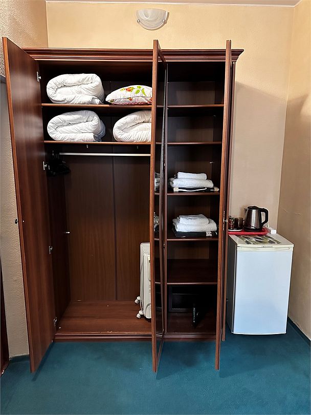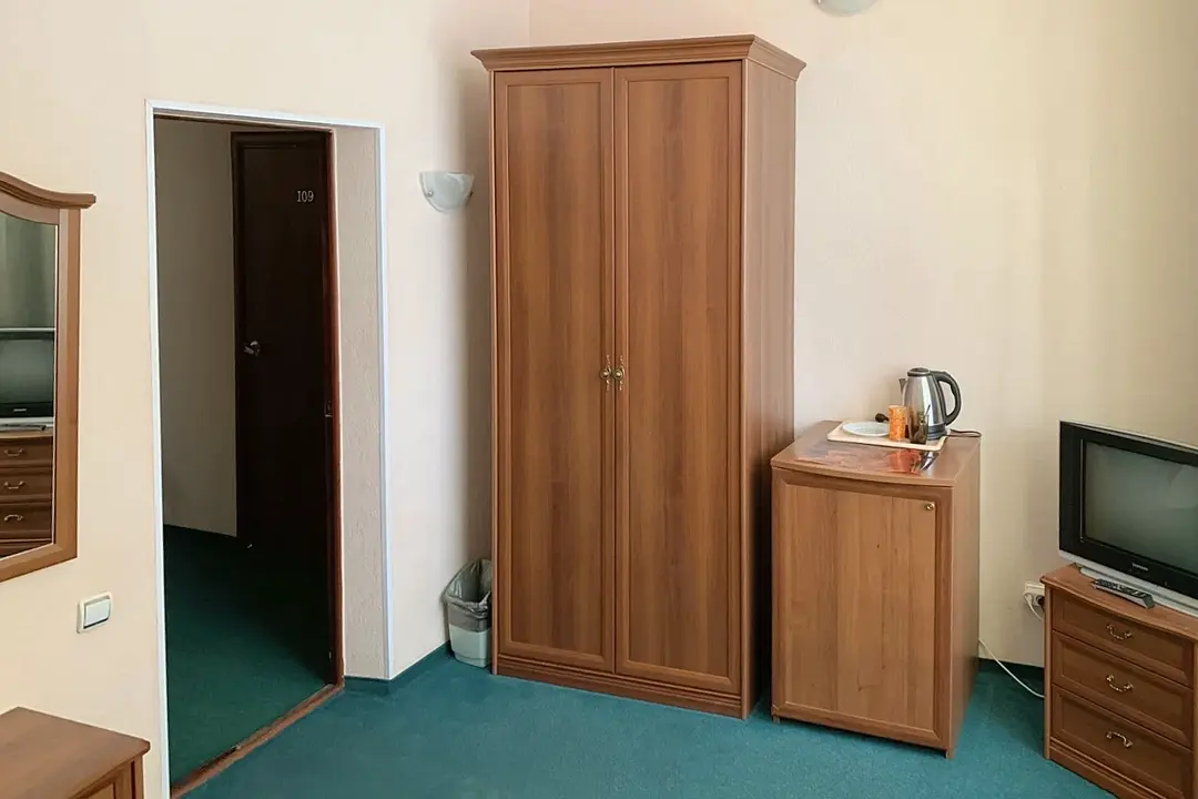НедостаткиНомер маленький, с другой мебелью. Очень холодный, хотя нам поставили обогреватель, и работали батареи. TV только 1 канал. Мыло и шампунь тоже по 1 шт., хотя нас 2 гостя. В целом, не критично, конечно, но за эти деньги хотелось бы по-комфортнее.