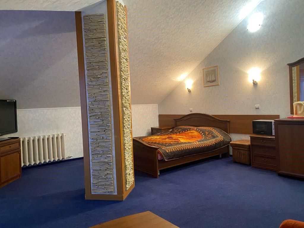 Двухместный однокомнатный мансардный номер на 5 этаже с собственным санузлом.