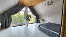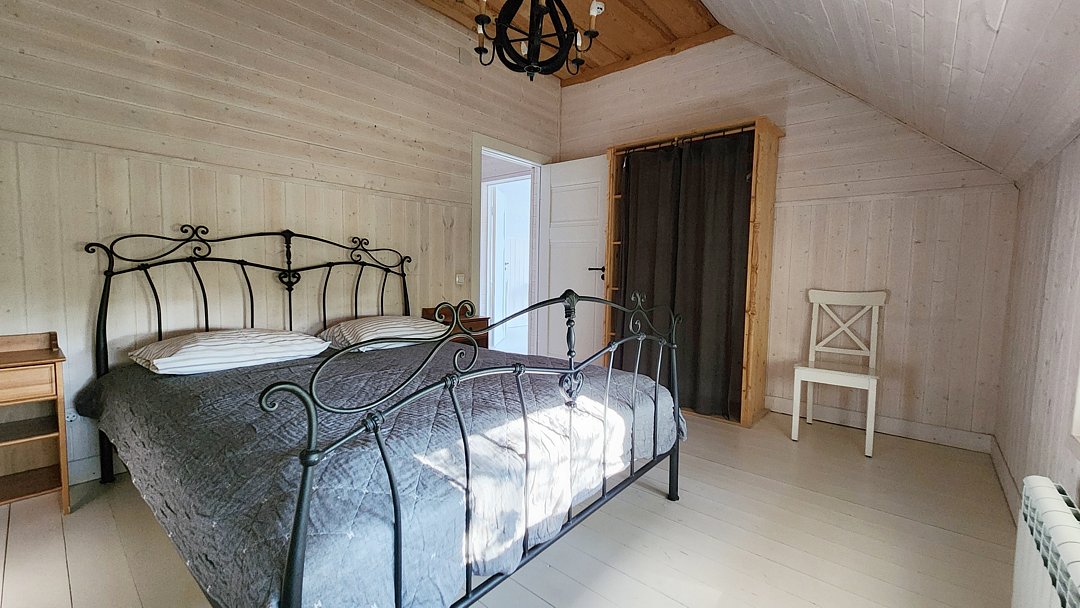 Второй этаж: две спальни. В большой спальне находится двуспальная кровать, а в маленькой спальне — одна двуспальная кровать. Стандартно дом рассчитан на восемь человек, для них все входит в оплату.