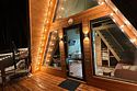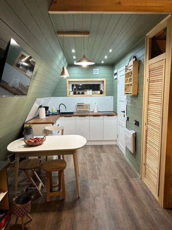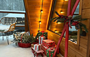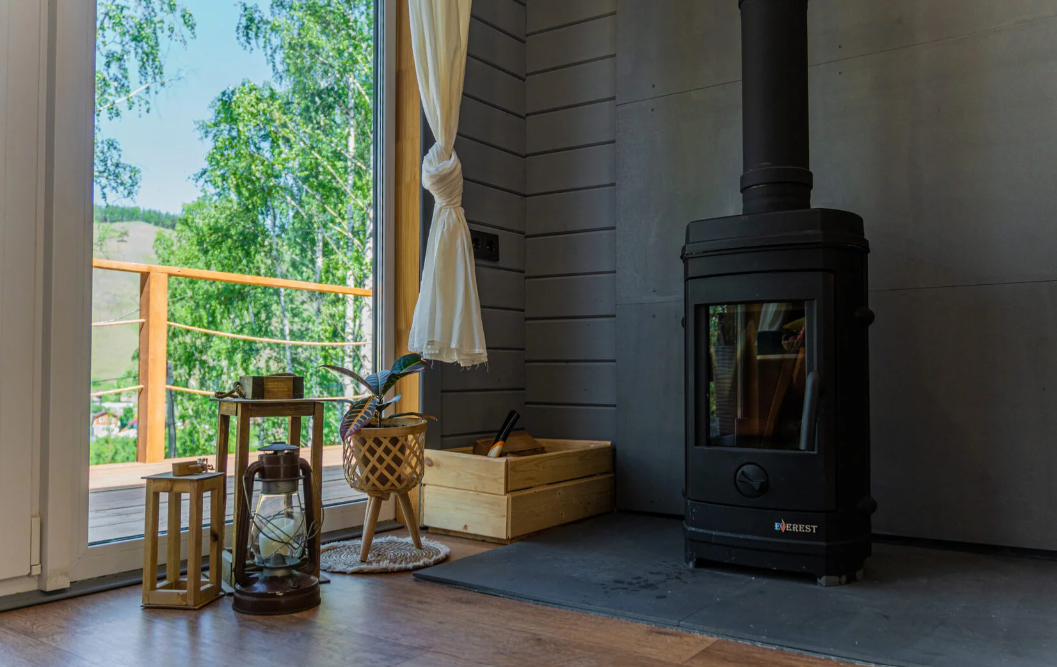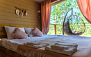 Глэмпинг представляет собой комплекс видовых домов, раскинувшихся в хвойном лесу у реки. Из панорамных окон открываются живописные виды. Дома выполнены в стиле афрейм и барнхаус. В каждом доме есть камин, терраса, теплый пол, удобные кровати с белоснежным бельем, полотенца, санузел с душем, горячая вода, тапочки, туалетно-косметические принадлежности. Дома оборудованы кухонной зоной, где предусмотрено все для приготовления еды – столовые приборы и посуда, бытовая техника. Рядом с каждым домом организована мангальная зона. Предоставляется мангал, казан, самовар, решетки, шампура, уголь, дрова, жидкость для розжига и газовые горелки.
