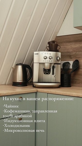 ванная комната с душевой и тёплым полом; кухня: чайник, холодильник, плита, микроволновая печь, необходимая посуда для приготовления еды и сервировки стола;