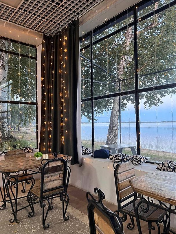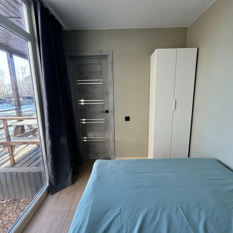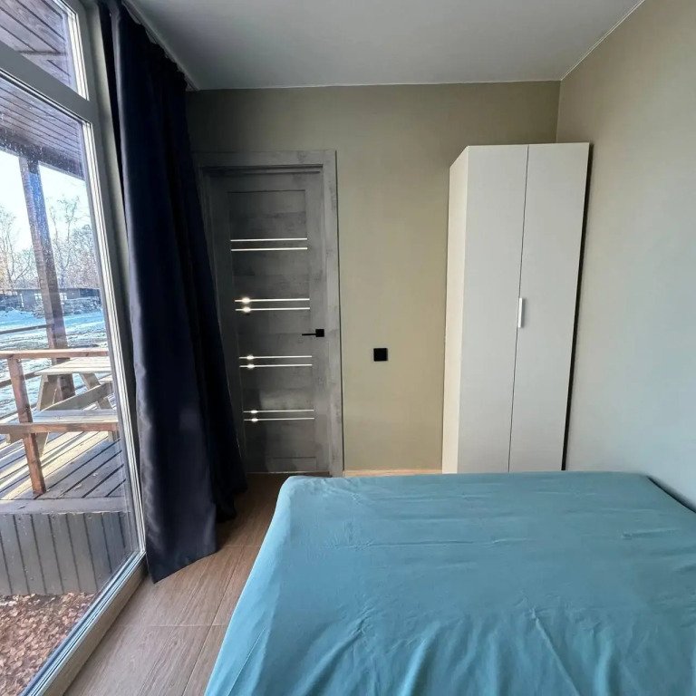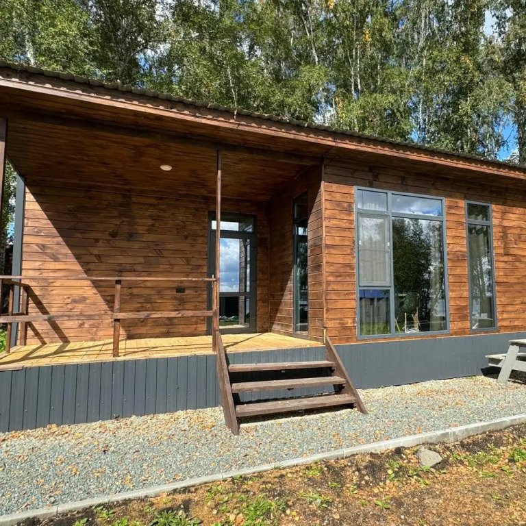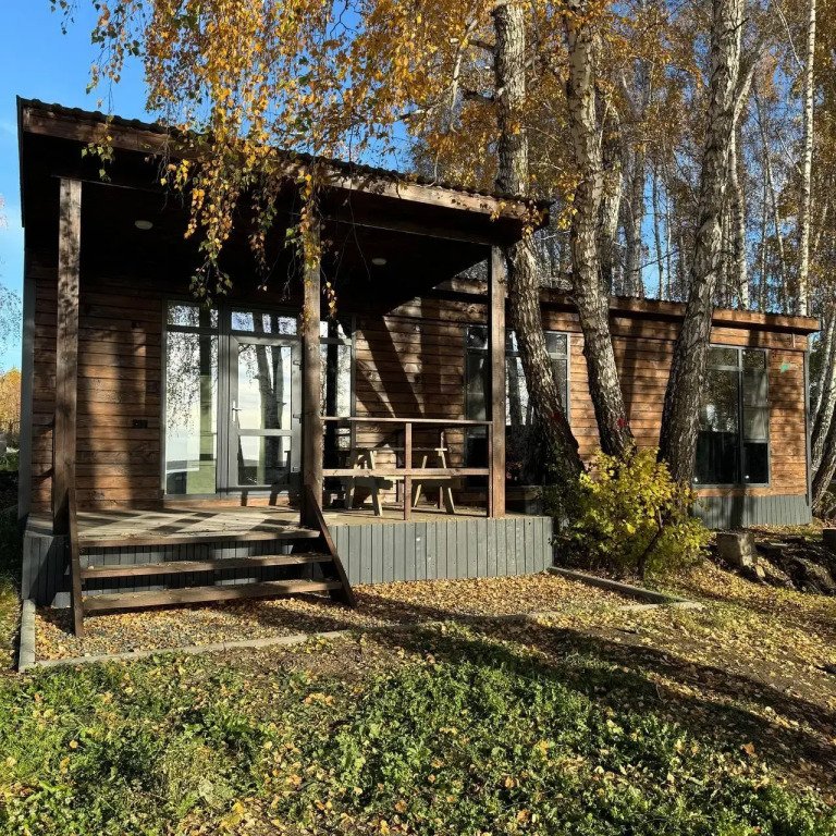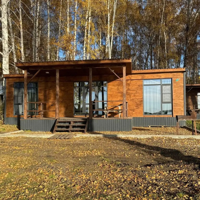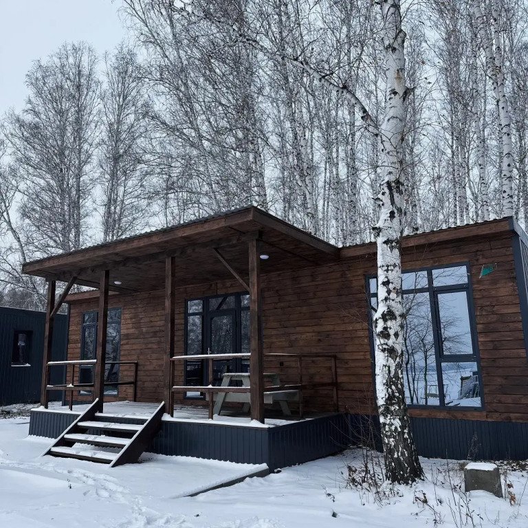 Уютный двухкомнатный дом с панорамными окнами и видом на озеро️, площадью 75 кв.м.: 2 спальные комнаты, большая гостиная с камином, кухонная зона и просторная веранда с мангалом. * В первой спальне: двуспальная кровать, прикроватная тумба; * Во второй спальне: две односпальные кровати, прикроватная тумба и вместительный шкаф; ; * В гостиной расположена зона отдыха: диван ️ (может служить дополнительным спальным местом до 2 гостей), обеденная и кухонные зоны. * Полностью оборудованная кухня: холодильник, микроволновка, варочная панель, необходимая посуда, а также стол и стулья для комфортного приема пищи. * Санузел оборудован душем, феном, укомплектован жидким мылом туалетной бумагой и освежителем воздуха, комплектом полотенец по числу гостей. Для дополнительного удобства предоставляются: сушка для белья, принадлежности для мытья посуды. В доме, для комфорта в любое время года, кондиционер и теплые полы. Для вашего досуга — Smart TV с доступом к онлайн-контенту. *Дополнительное спальное место не предусмотреноУслуги и удобства