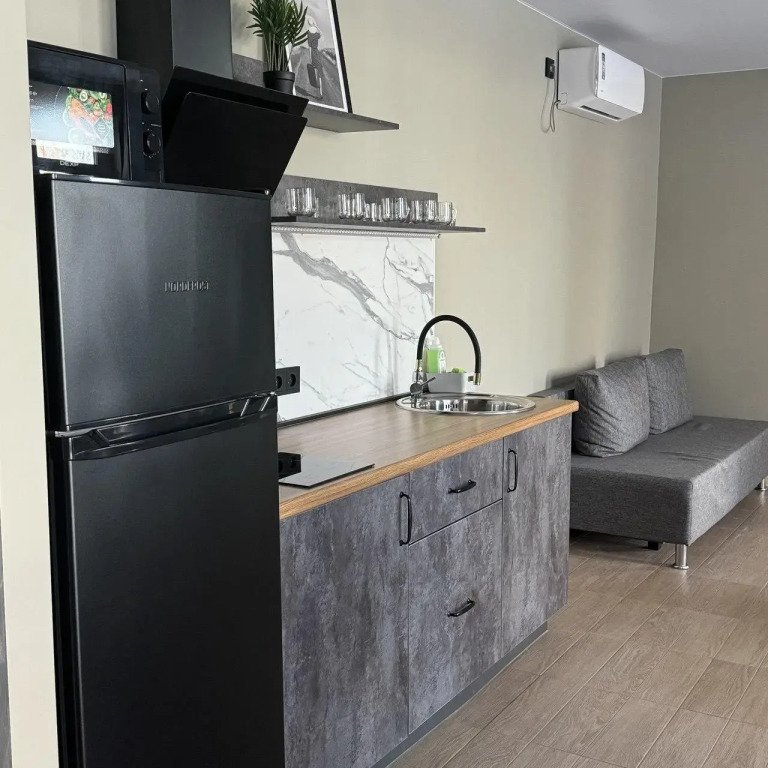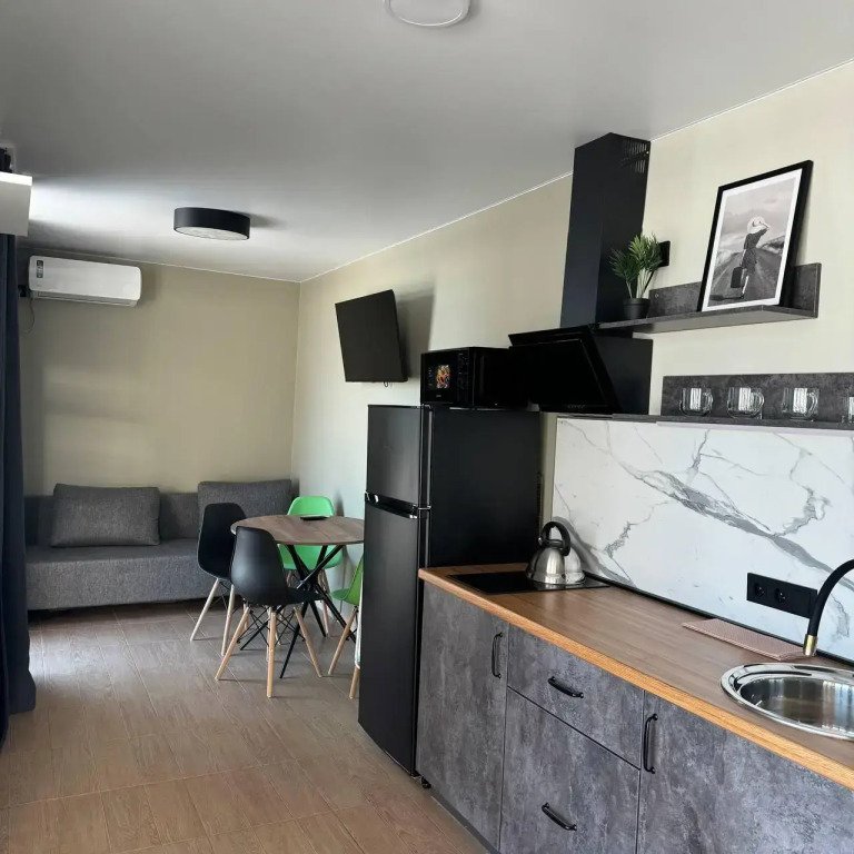 Уютный двухкомнатный дом 45 кв.м. с 1 спальной комнатой, гостиной, кухонной зоной и просторной верандой с мангалом. * В спальной комнате 1 двуспальная кровать, прикроватная тумба и вместительный шкаф; * В гостиной расположена зона отдыха, обеденная и кухонные зоны. Установлен диван для отдыха (может служить дополнительным спальным местом до 2 гостей) * Полностью оборудованная кухня: холодильник, микроволновка, варочная панель, необходимая посуда, а также стол и стулья для комфортного приема пищи. * Санузел с душем, феном, жидким мылом, туалетной бумагой и освежителем воздуха. * 4 комплекта полотенец и комплекты постельного белья. * Дополнительные удобства: сушка для белья, принадлежности для мытья посуды, кондиционер и теплые полы для уюта в любое время года. * Для вашего досуга — Smart TV с доступом к онлайн-контенту. *Дополнительное спальное место не предусмотрено.Услуги и удобства