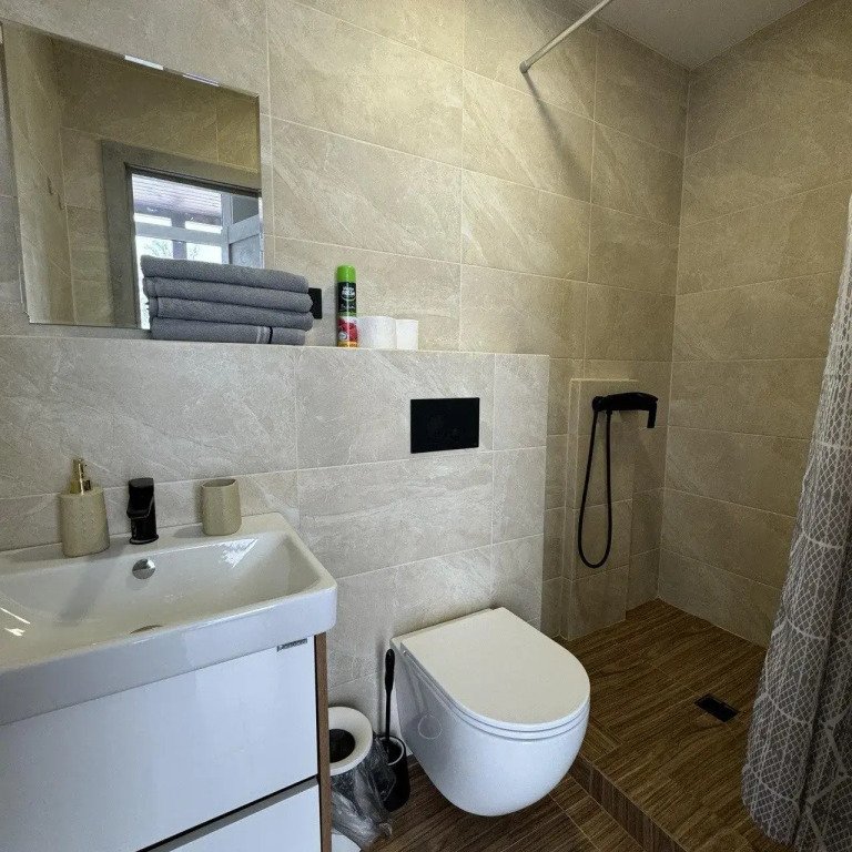 Уютный трехкомнатный дом площадью 75 кв.м.: 3 спальные комнаты️: гостиная, кухонная зона, санузел и просторная веранда с мангалом. * В первой спальне: двуспальная кровать, прикроватная тумба и вместительный шкаф; * Во второй спальне: двуспальная кровать, прикроватная тумба; * В третьей спальне: двуспальная кровать или две односпальные кровати, прикроватная тумба; * В гостиной расположена зона отдыха- диван ️, обеденная и кухонные зоны. * Полностью оборудованная кухня: холодильник, микроволновка, варочная панель, необходимая посуда, а также стол и стулья для комфортного приема пищи. * Санузел оборудован душем, феном, укомплектован жидким мылом, туалетной бумагой и освежителем воздуха, комплектом полотенец по числу гостей. Для дополнительного удобства предоставляются: сушка для белья, принадлежности для мытья посуды. В доме, для комфорта в любое время года, кондиционер и теплые полы. Проживание с животными в данном доме ЗАПРЕЩЕНО! *Дополнительное спальное место не предусмотрено.Услуги и удобства