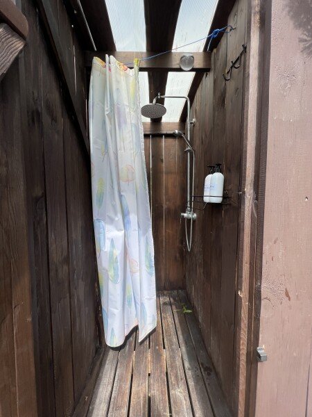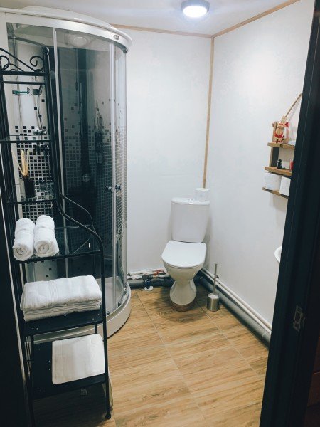 Туалет городского типа и душевые в паре минут от шатра, душ летний и душ с бойлером
