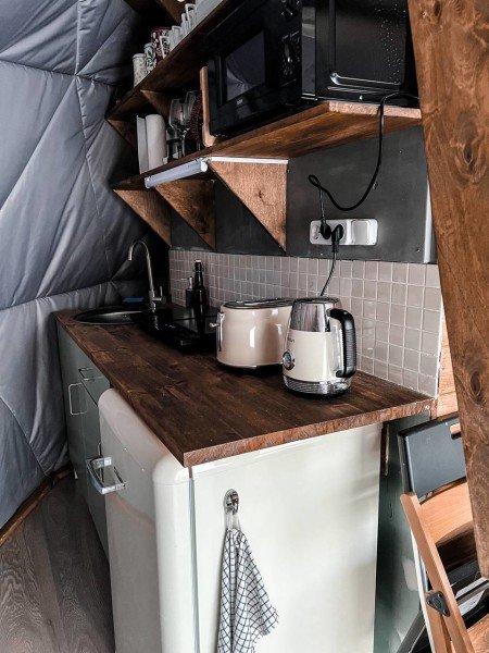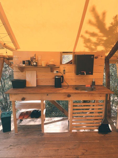 Для проживающих в «Летних шатрах - сафари-тентах» доступна общая кухонная зона с большим холодильником и плитой.