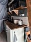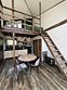 Внутри есть двуспальная кровать и детский диван на втором уровне, и раскладной диван на первом.