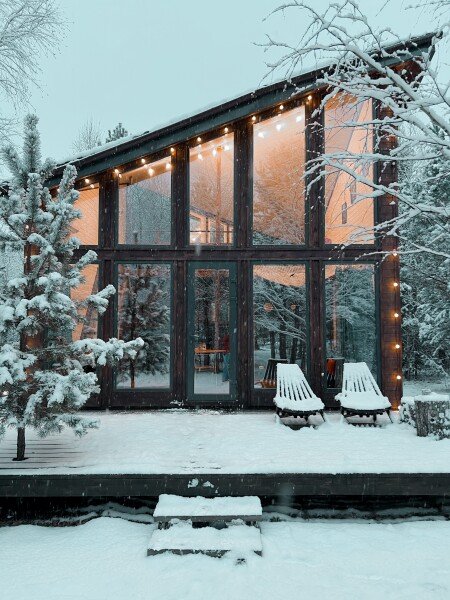 В глэмпинге два вида чанов — для домиков и для сафари-тентов. У каждого домика свой чан, топятся чаны к 8-9 вечера. По времени чан у домика горячий зимой 2-3 часа, летом дольше.