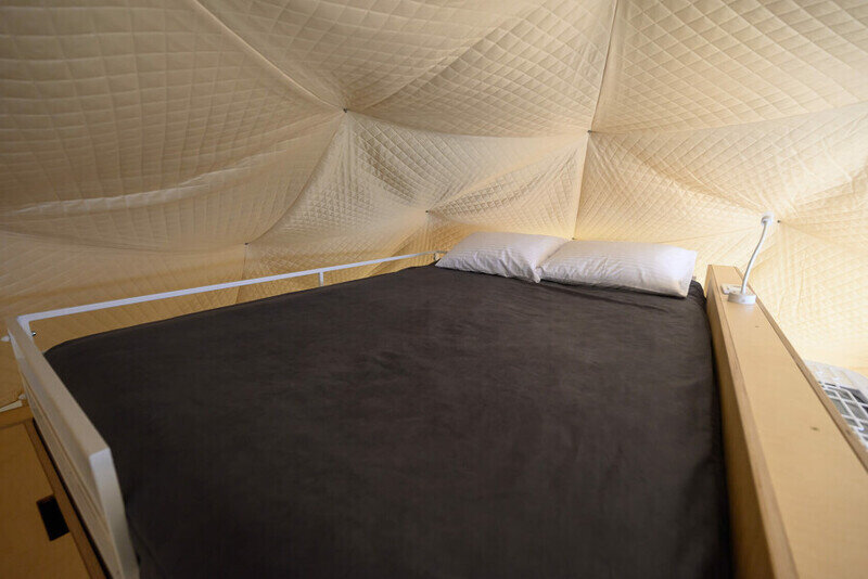 Одна двуспальная кровать, одно раскладное креслоВ глэмпинге