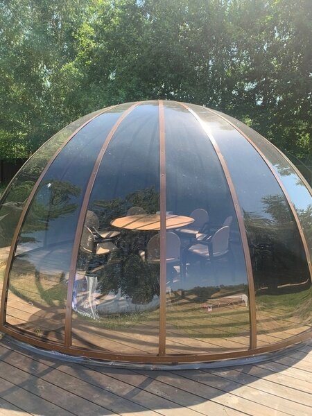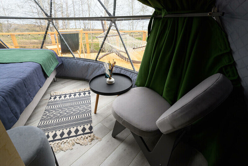 Эта удивительная сфера на деревянном каркасе сочетает в себе современный дизайн и уют, создавая идеальные условия для отдыха на природе. Его главная особенность — большое панорамное окно, через которое вы сможете наслаждаться великолепными видами окружающего пейзажа, будь то утренний рассвет или вечерний закат.