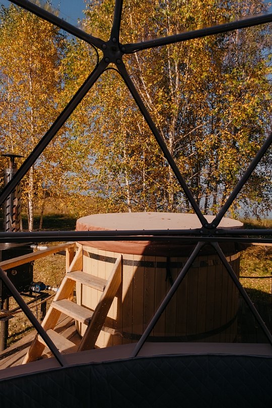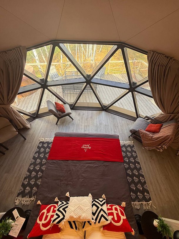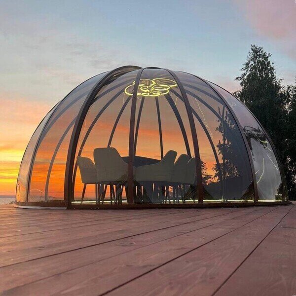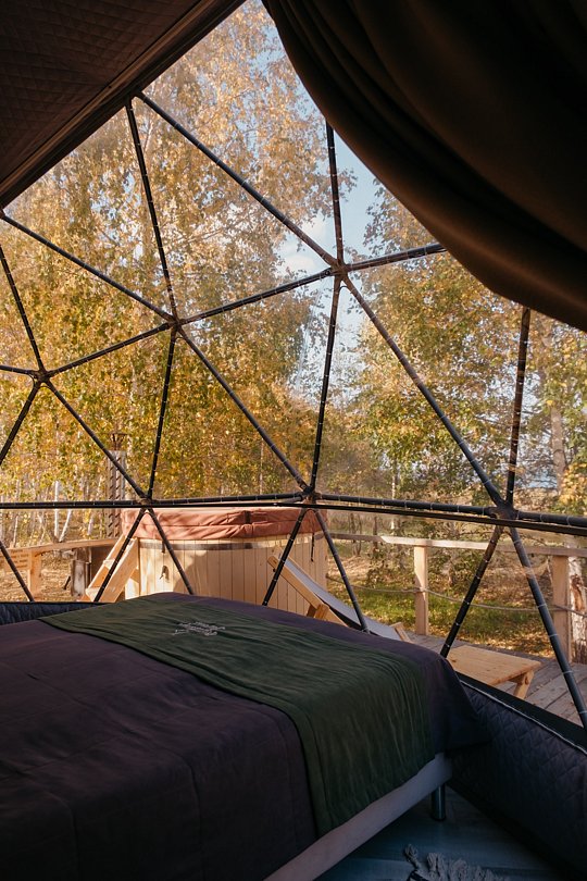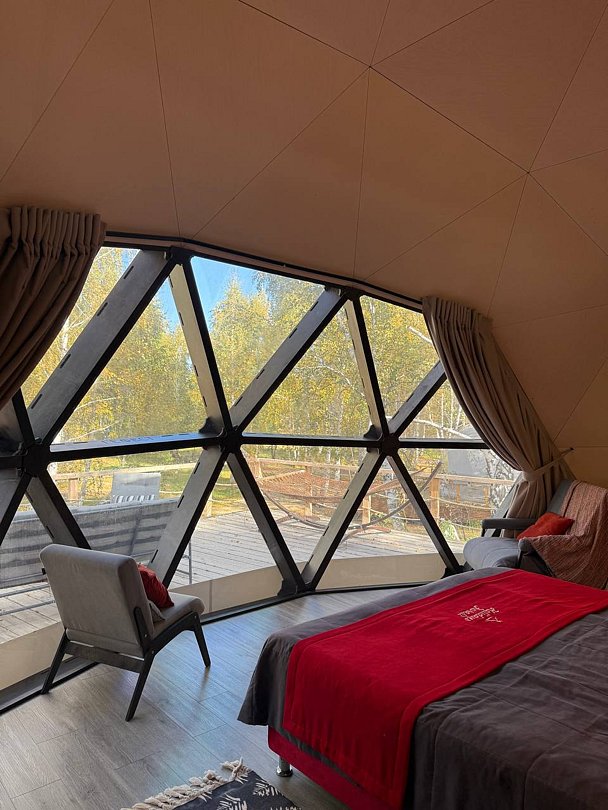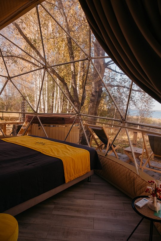 Сфера с панорамным видом на озеро Увильды и уникальный дизайн интерьера создают чувство уединения и внутреннего свечения, придают ощущение теплой элегантности и неповторимой красоты. Мягкое освещение и оттенки создают ощущение умиротворения и комфорта, поражая своей утонченностью.