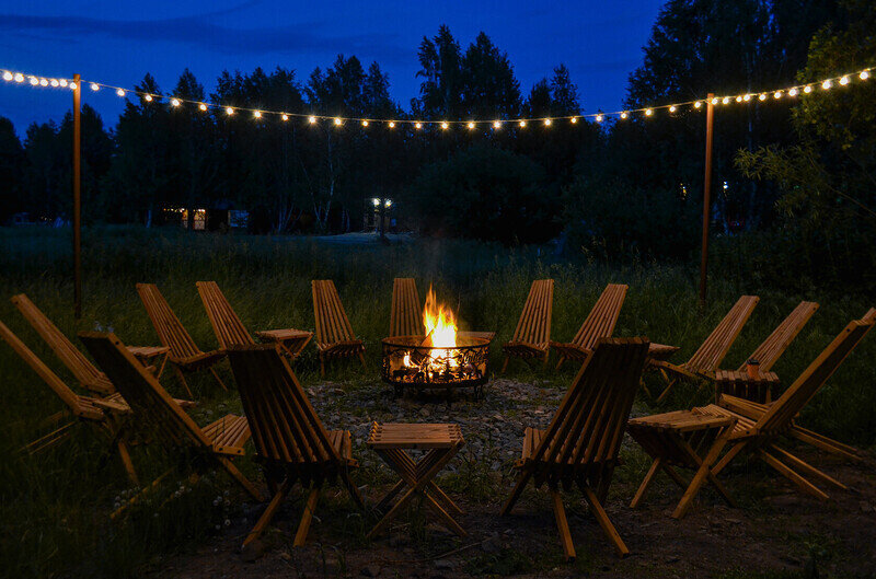 Костровая зона глэмпинга «Холидей Форест» станет сердцем Вашего отдыха, местом, где Вы сможете по-настоящему расслабиться и зарядиться положительной энергией. Проведите незабываемый вечер у огня, слушая шелест ветра и всматриваясь в завораживающие переливы звезд. Пусть тепло костра и беседы с близкими согреют Ваши сердца и наполнят вас ощущением гармонии и спокойствия.