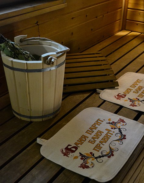 Для каждого гостя мы предоставим комплект полотенец и уютный халат (при заказе купели).