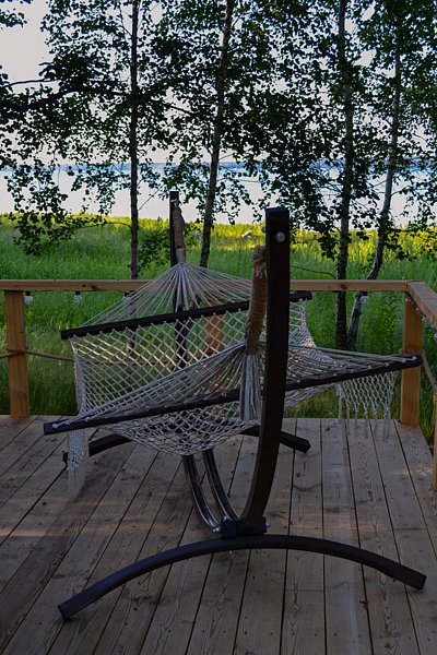 На собственной террасе гамак, гриль мангал,купель Комфортное размещение для 4-х гостей. Можно с животными.