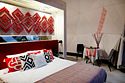 Интерьер оформлен зелёными и золотистыми акцентами, создающими эффект благородной экзотичности и утончённости.