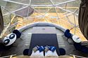 Шикарные светло-голубые и серебристые тона внутреннего пространства геокупола призваны подчеркнуть прозрачность и кристальную яркость алмазных форм.