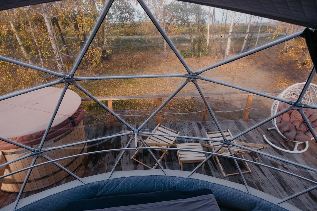 Комфортное размещение до 5-х гостей. Сфера с панорамным видом на озеро Увильды.
