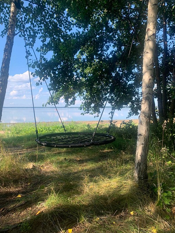 Семейный отдыхДостоинстваОчень спокойно, тихо, чистый воздух. Есть парковка. Встретили хорошо. Озеро очень чистое, но мелковато. Мы брали сферу, но можно встать и с палаткой. Сферы очень удобные, есть все необходимое, комфортный санузел с туалетными принадлежностями, оборудованная небольшая кухня, удобная кровать. Очень большой плюс - наличие кондиционера. Купель не заказывали, но думаю, что это тоже очень прикольно.