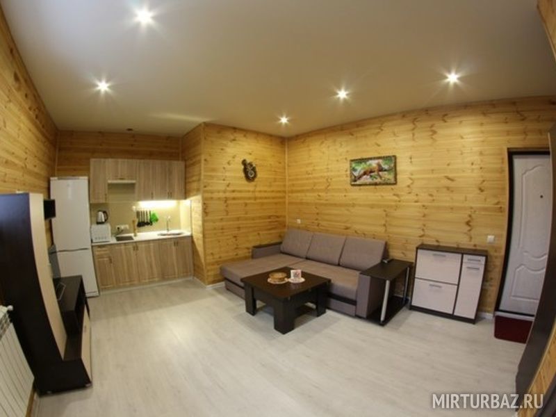 - Три комфортабельных номера, рассчитанные на 4 человека: кухня-студия с раскладным диваном, уютная спальная комната с двуспальной кроватью, душевая кабина и санузел;